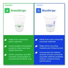 Opt for the durable and appealing BlueStripe™ cups, designed to combine strength with style. These cups are partially made from recycled PET bottles, contributing to environmental sustainability. Each cup features detailed information about its recycled content, highlighting the commitment to sustainabiity practices. The BlueStripe™ cups offer both functionality and a sleek appearance, making them a practical choice for any event or daily use. Sized to suit most beverage needs. Their robust construction ensures reliability while their recycled materials reflect a dedication to reducing waste. Choose BlueStripe™ cups to enhance your service with a responsible and attractive option.